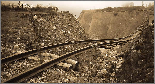 Tramo de vía inservible del "Tren a las nubes". Provincia de Salta. Ene02