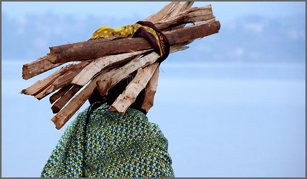 Mujer transportando leña. Bukavo. Congo. Mar06