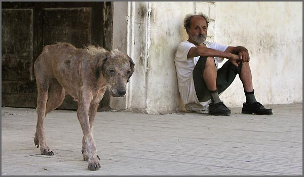 Mendigo y su perro en la Habana. Cuba. 2005